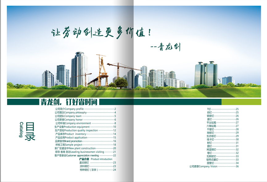 青龍劍釘業(yè)以“讓勞動創(chuàng)造更多價值!”為企業(yè)理念,致力于生產(chǎn)優(yōu)質(zhì)高效的釘類產(chǎn)品。