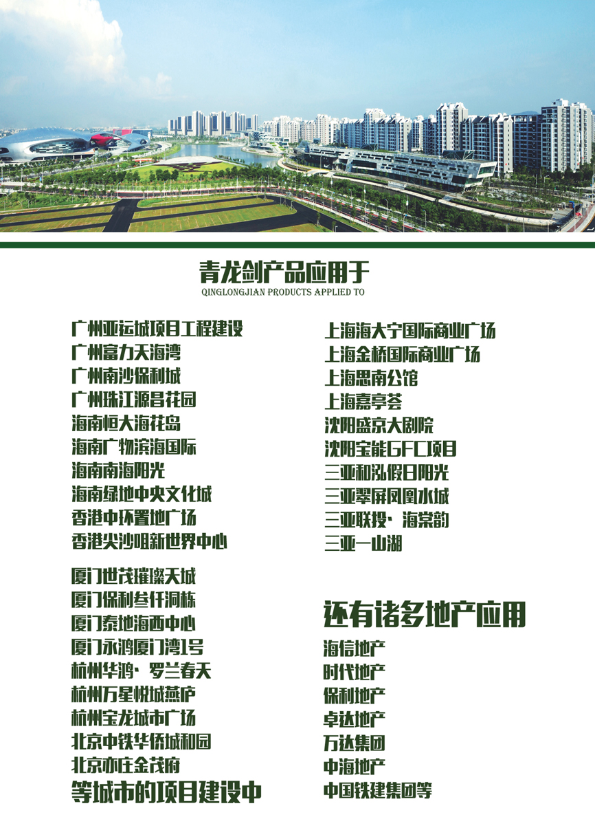 近日,收到廣州利合房地產(chǎn)發(fā)來的“青龍劍”品牌釘類產(chǎn)品在廣州亞運城項目成功入選的相關(guān)材料,青龍劍被列入工程項目中指定品牌釘類產(chǎn)品。