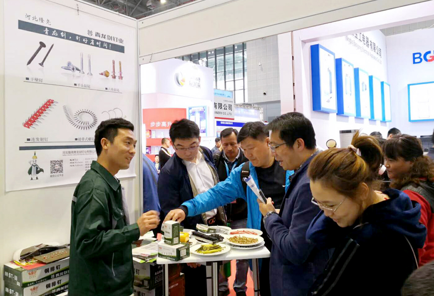 展會上展示了青龍劍釘業(yè)的全系列產品,裝修用釘、建筑用釘、螺絲釘。并推出新產品,鏈帶干壁釘、高強度連發(fā)射釘、吊頂一體射釘。在青龍劍工作人員的講解并演示下,吸引了眾多參展者的駐足,對青龍劍產品產生了極大興趣,并進行了詳細咨詢。
