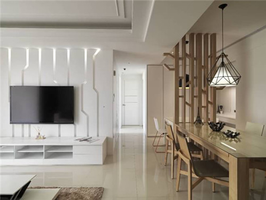 3. 現(xiàn)代裝修中,講究質(zhì)感的突出,其中白色是風(fēng)格最常用的色彩,不僅增加室內(nèi)光亮度,而且有利于室外陽光的撒入。因此很多電視背景墻往往采用最簡單的裝飾手法,通過線條的變化,產(chǎn)生律動感,讓空間看起來更加有趣。